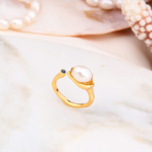 Bague – Bronze Doré À L’Or Fin Et Perle De Culture