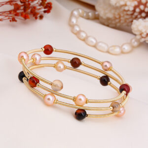 Bague – Bronze Doré À L’Or Fin Jaune Et Perles De Culture