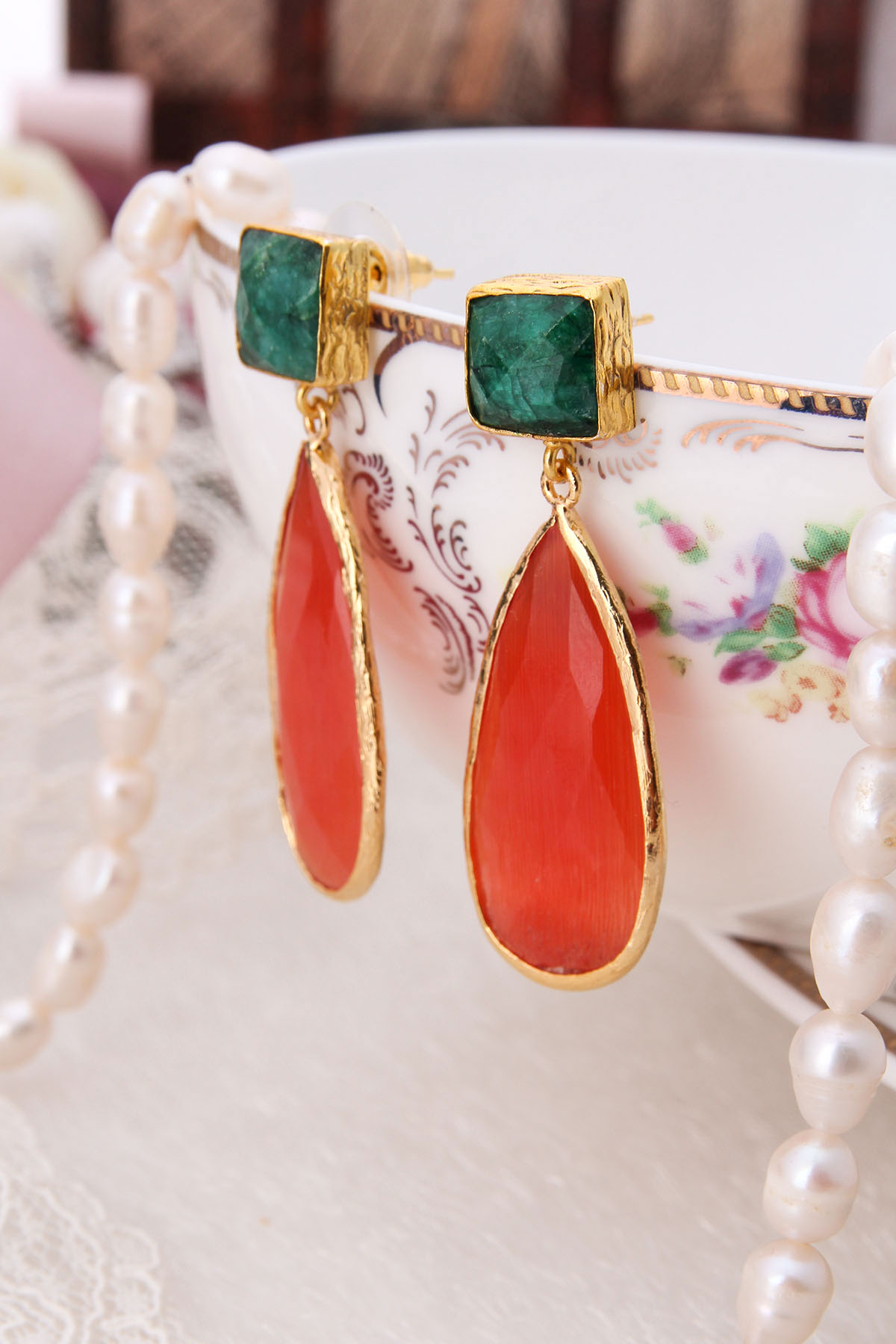 Boucles D’Oreilles – Bronze Doré À L’Or Fin Jaune Et Agates
