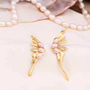 Boucles D’Oreilles – Bronze Doré À L’Or Fin Jaune Et Perles De Culture