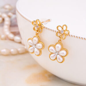 Boucles D’Oreilles – Bronze Et Laiton Dorés À L’Or Fin, Agates Et Citrines