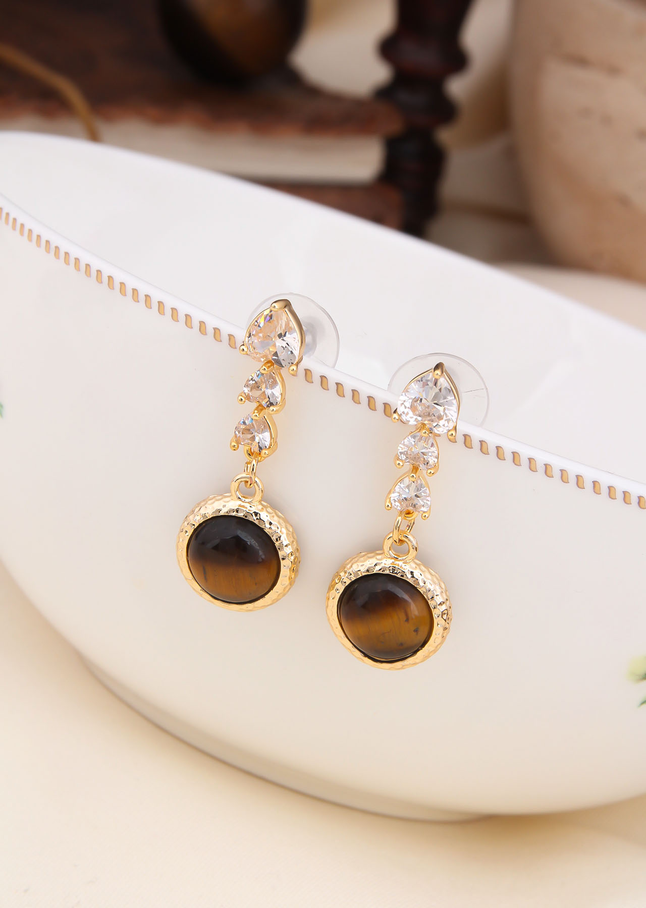 Tiger Eyes & Zircon Earring
